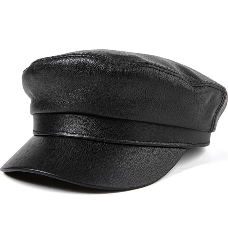 XdanqinX Genuine Leather Hat Elegant Women's Army Military Hats Autumn Men's Flat Cap Sheepskin Leather Black Brand Snapback Cap
